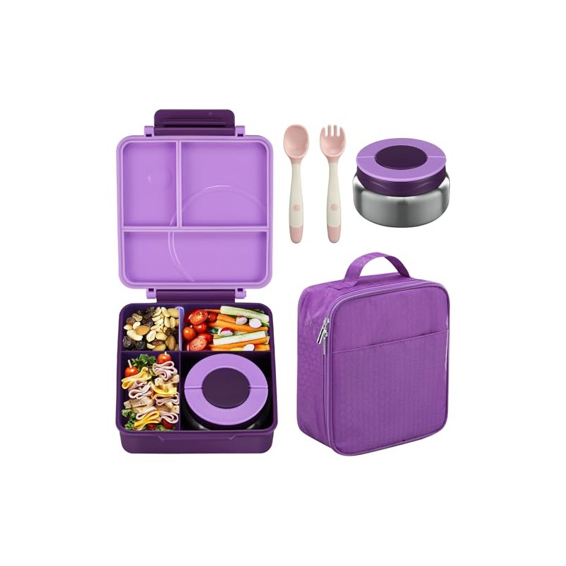 - Bento Lunch Box Set-The set includes 1 bento box, 1 matching insulated lunch bag, a set of cutlery (spoon and fork) and 1 stainless steel insulated soup thermo. The lunch box set is perfect for children and fits in a lunch box or book bag. Make your child's lunch at school or on the go fun and nutritious. AGE GRADE: 3 years of age and over.