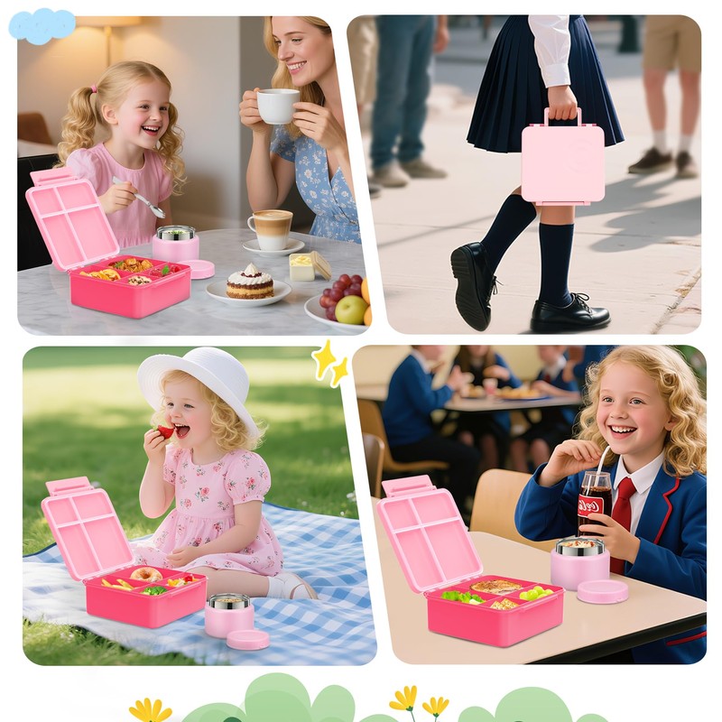 - PORTABLE & LEAKPROOF : This kids lunch box features an easy-grip handle and lightweight bento box design with 360° leakproof seals to prevent messy backpack spills.