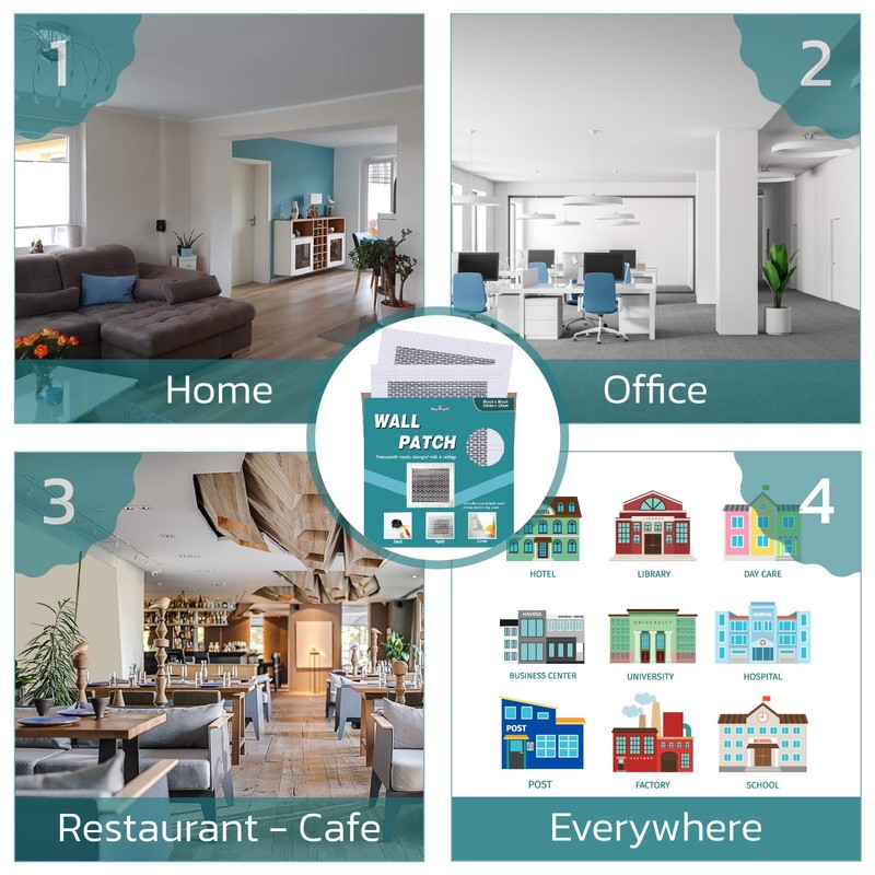 - Easy to Use: The drywall repair patch is easy and practical to apply. First sand the hole in the wall with a sandpaper, then apply the self-adhesive hole repair patch to cover the hole completely. There is 1-inch - 2.5 cm extra around for full adhesion. Then cover it with drywall repair paste. Easy and practical.