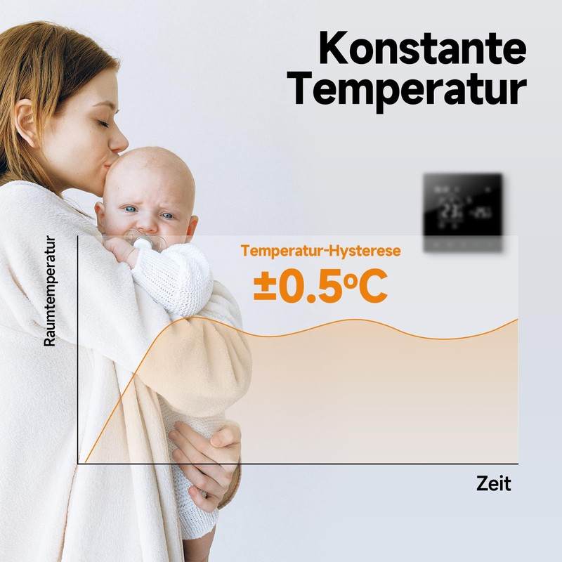 - Smart Wi-Fi heating: Control the room thermostat from anywhere and anytime via the smartphone app "tuya" or "smart life". Easily change temperature settings, create heating plans, create intelligent scenes or share devices with family, adjust the backlight and operating noise. 2.4GHz Wi-Fi network required.
