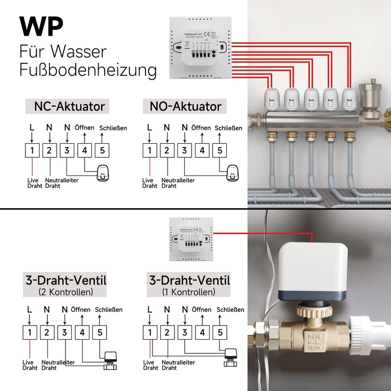 - 【Multifunction】: WIFI function, backlight brightness adjustment, frost protection function, temperature compensation function, child lock, start temperature difference, power down memory function, factory reset, etc. Working modes: manual mode, programming mode, temporary manual mode, holiday mode.