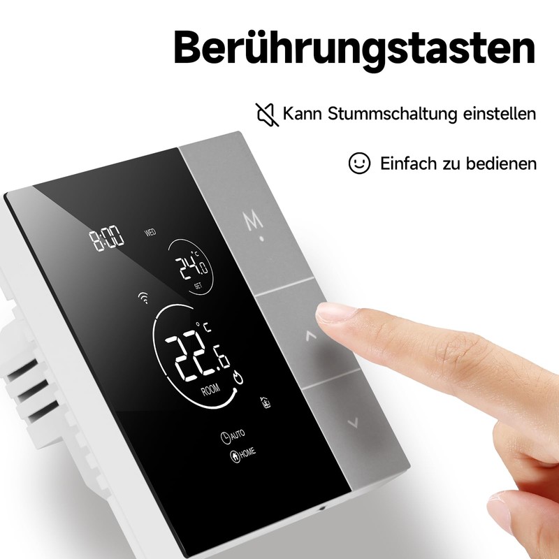 - App control: Download the Tuya or Smart life application to your phone, perform the settings and you can view and control the temperature in your home from your phone. Easily change temperature settings, create schedules, create intelligent scenes or share devices with the family, adjust the backlight and operating sound via the application. Requires 2.4 GHz Wi-Fi