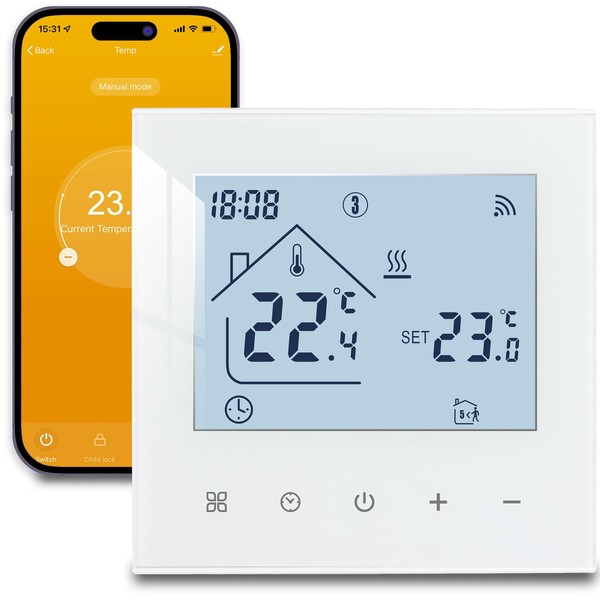 - Intelligent WiFi Heating Suitable for water underfloor heating such as thermal head, electric valve, etc.Control the room thermostat from anywhere and anytime via the smartphone app "tuya".