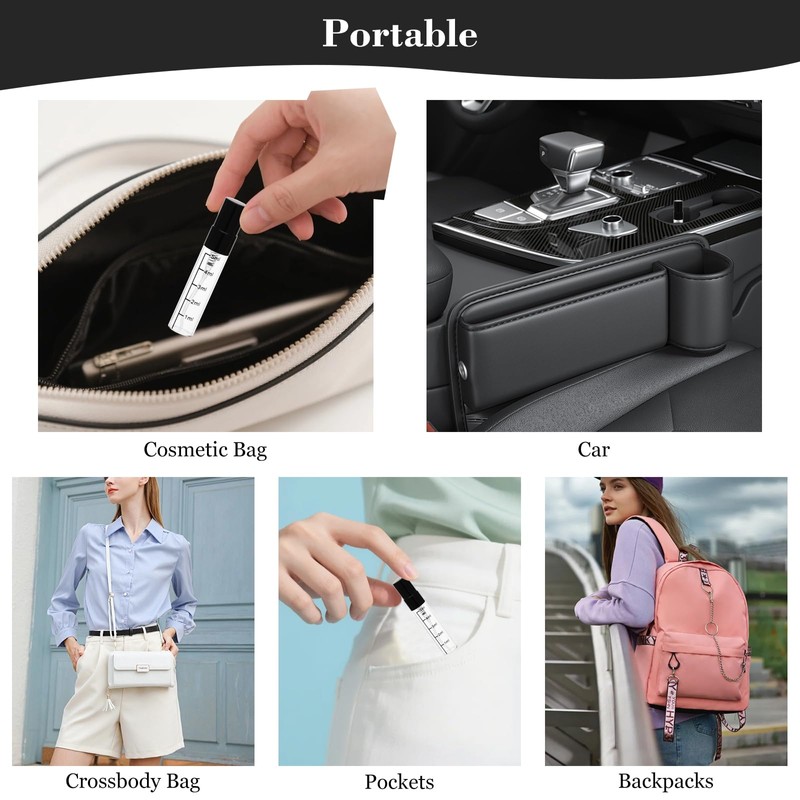 - PORTABLE DESIGN: Compact size perfect for travel, fitting easily in purses, bags, or pockets for on-the-go convenience, these miniature perfume bottles help you stay fresh and confident wherever life takes you