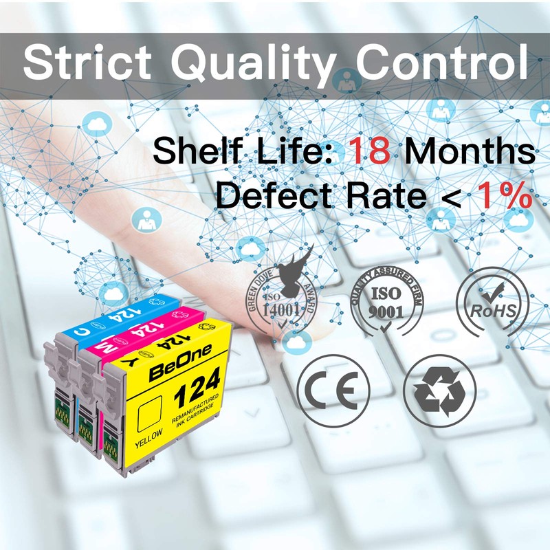 - Feature: T124 ink cartridges are clear and consistent print performance; ISO9001, ISO14001 and RoHS certified