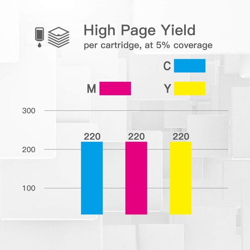- Page Yield: Up to 200 pages per black ink cartridge, 220 pages per color ink cartridge (at 5% coverage of A4 paper)