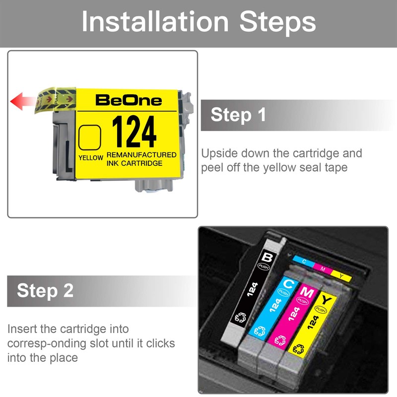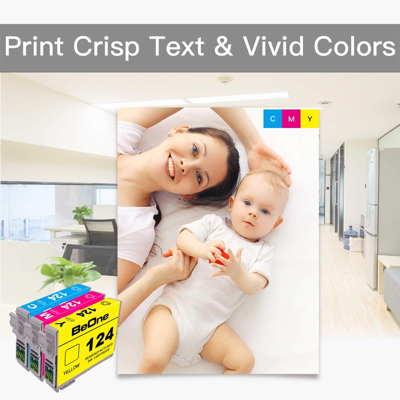 - Content: High yield remanufactured for Epson 124 T124 ink cartridges (1 Cyan, 1 Magenta, 1 Yellow; Total 3-pack)