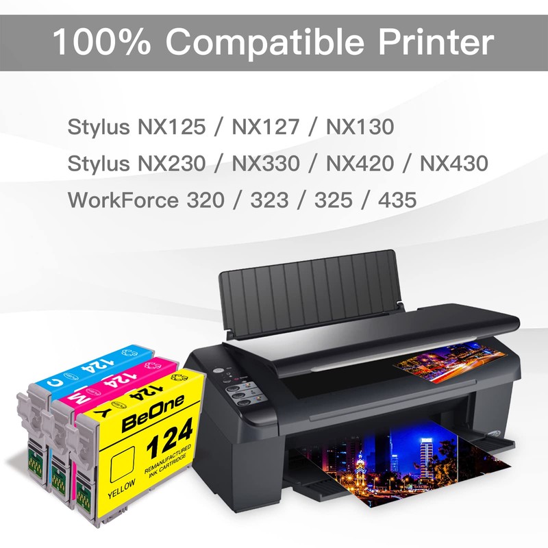 BeOne Remanufactured Ink Cartridge Replacement for Epson T124 124 to use with Stylus NX125 NX127 NX130 NX230 NX330 NX420 NX430 Workforce 320 323 325 435 Printer (3-Pack; 1Cyan, 1Magenta, 1Yellow)