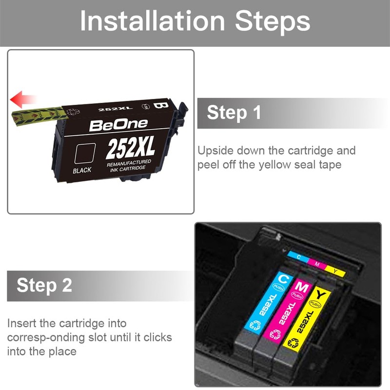 BeOne Remanufactured Ink Cartridges Replacement for Epson 252XL 252 XL T252 T...