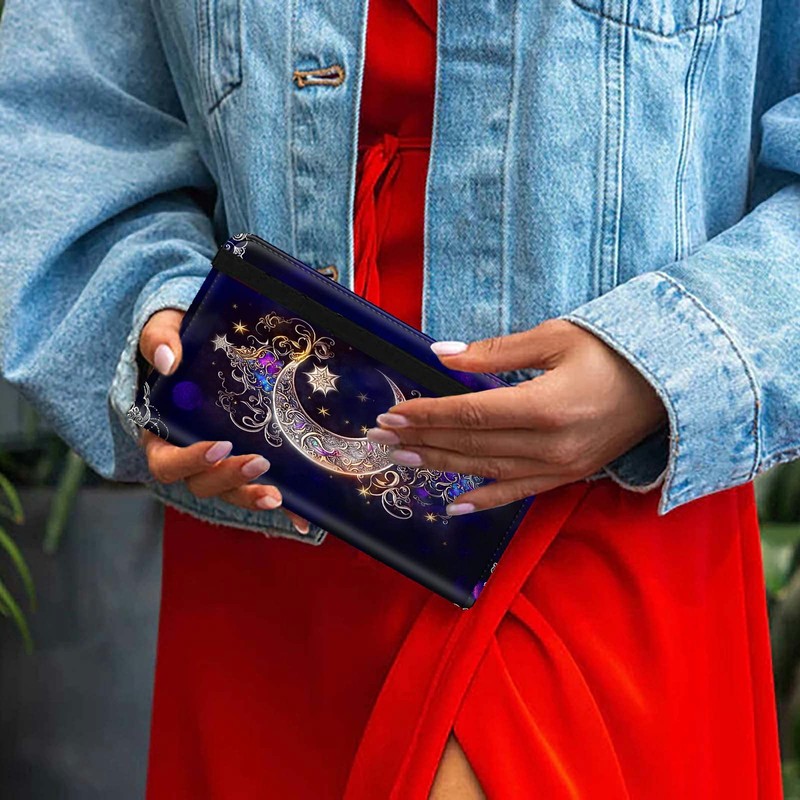 BEOTIWAD Checkbook Cover Moon Star Galaxy Floral Pattern Premium Leather Check Book Holder Wallet with RFID Blocking Function for Men and Women