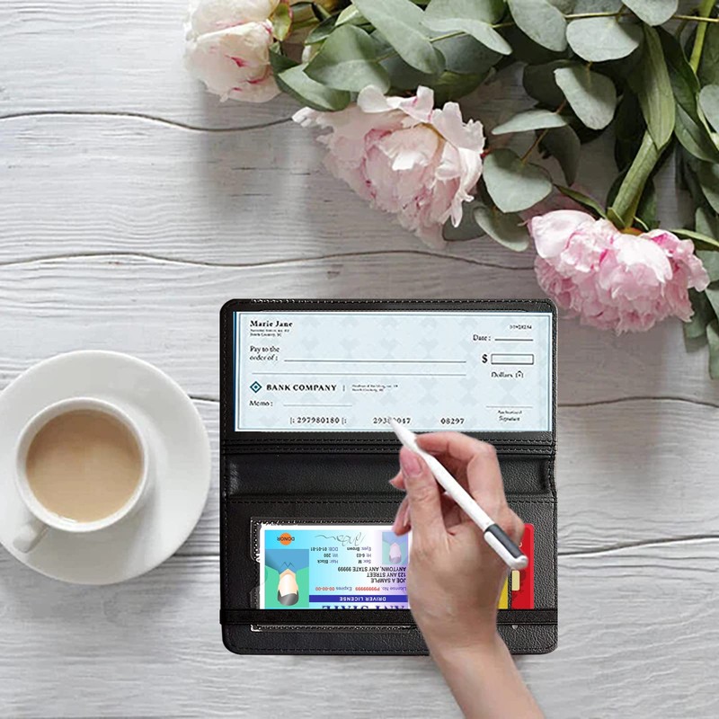 - ❤SAFE DESIGN: This checkbook wallet is equipped with advanced RFID Secure Technology, which perfectly protects your personal account information. If you have ever lost checks, cards, cash slip out of your checkbook wallets, our checkbook cover for men and women is perfect for you!