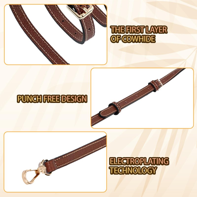Longchamp Mini Bag Strap, Longchamp Strap, Brown Adjustable Bag Straps Leather No-punch Bag Straps, Replacement Shoulder Strap for Long Champ Tote Le Pliage Bag Accessories Handles What You Will Receive: Your purchase includes 1 brown leather mini bag strap and 2 strap adapters, designed specifically for Longchamp bags. This complete set ensures a seamless replacement or upgrade for your Longchamp tote bag accessories. Premium Quality Material: Crafted from brown leather, this Longchamp strap offers both durability and sophistication. The high-quality material ensures it complements your bag while providing a comfortable and long-lasting carrying experience. No-Punch Installation: This no-punch bag strap is designed for easy attachment without damaging your bag. The included adapters allow you to securely fit the strap onto your Longchamp tote, maintaining the bag's original design and integrity. Adjustable Shoulder Strap: With an adjustable length ranging from 94cm to 124cm, this shoulder strap offers customizable comfort. Whether you prefer a crossbody or shoulder carry, it adapts perfectly to your Longchamp mini bag and personal style. Wide Compatibility: Measuring 1.2cm in width,this leather shoulder strap is perfect for Longchamp handbags, purses, bucket bags and other DIY bags. Its versatile design makes it a practical and stylish accessory for various occasions and bag types.