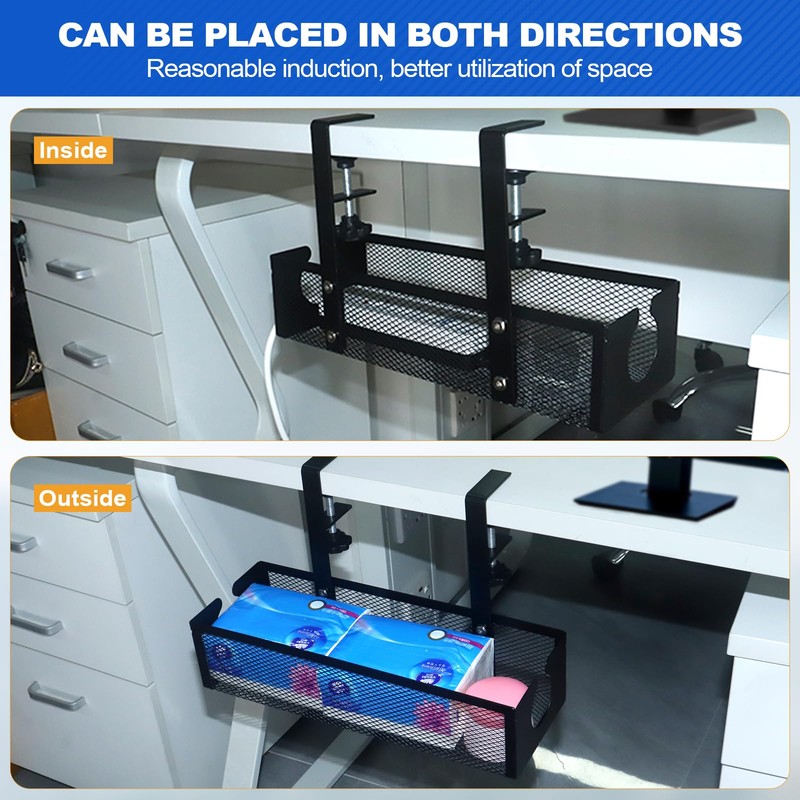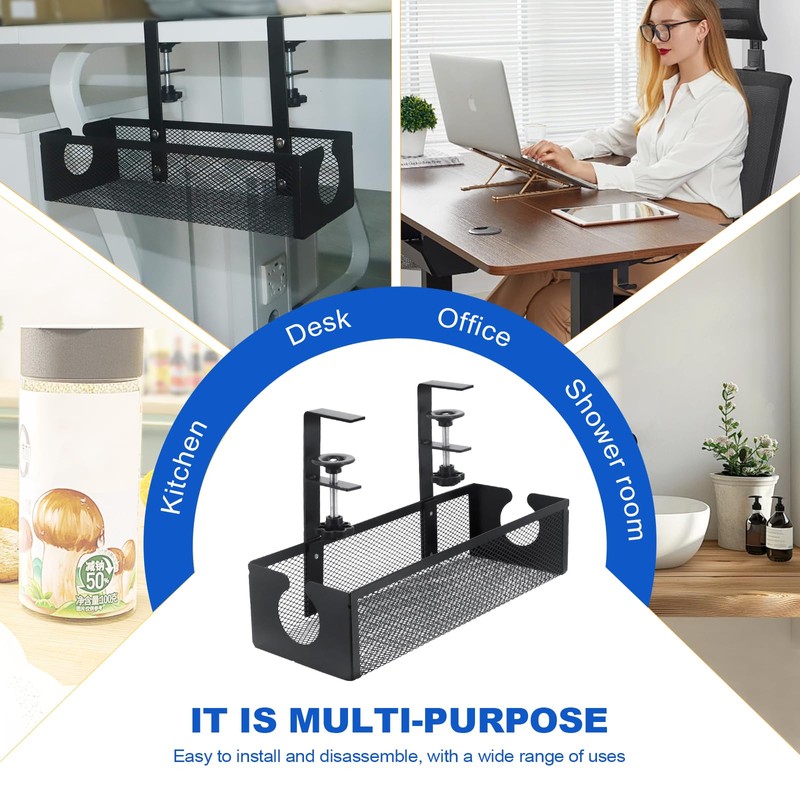 - 【Easy to Install】: The under desk cable management storage basket requires no drilling, screwing, adhesives, etc. The storage basket has adjustable clips that clip securely to most desktops, so all you need to do is clip the basket to your desktop.