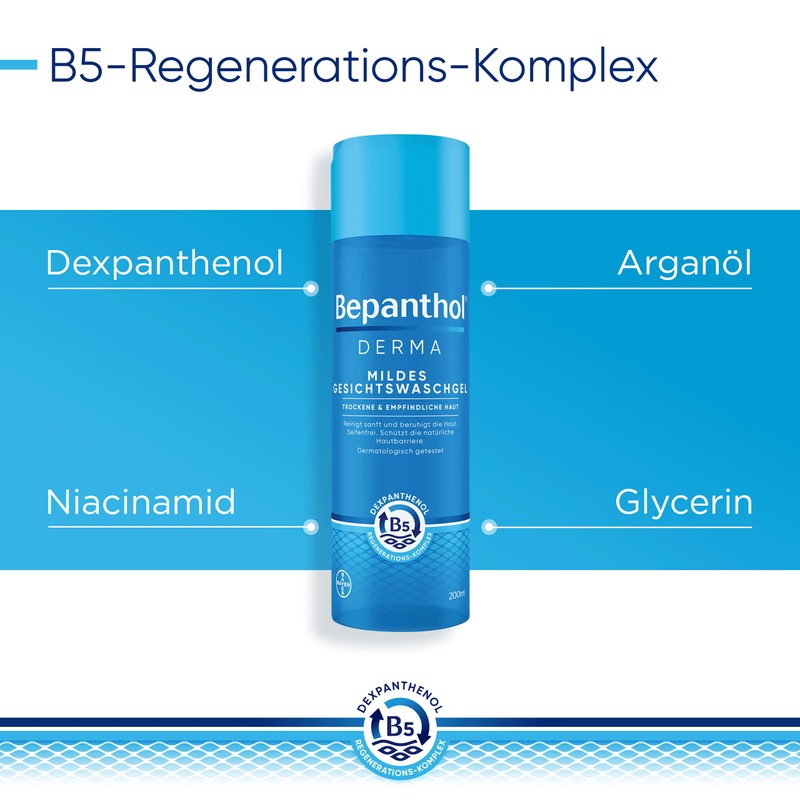 - The mild face wash gel is a dermatologically tested medical skin care from Bepanthen - scientifically based and recommended by professionals