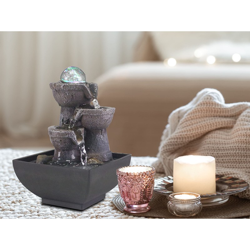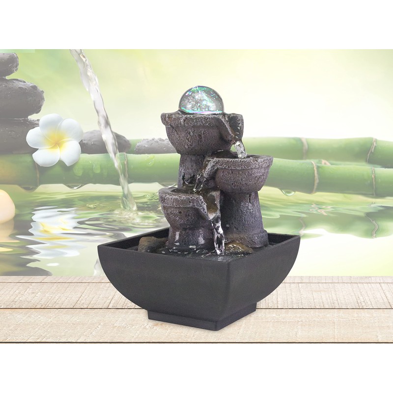 - Continuous flow: indoor fountain with pump for constant water circulation included
