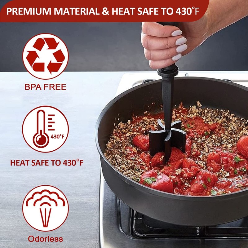 Beprezco Meat Chopper 5 Curve Blades Ground Beef Masher, Heat Resistant Meat ...