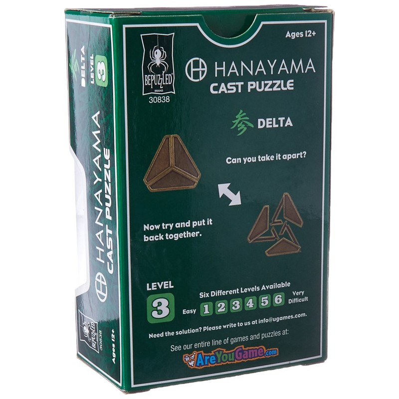 - Hanayama's Delta brainteaser consists of three identical, interlocking pieces that are fiendishly hard to separate