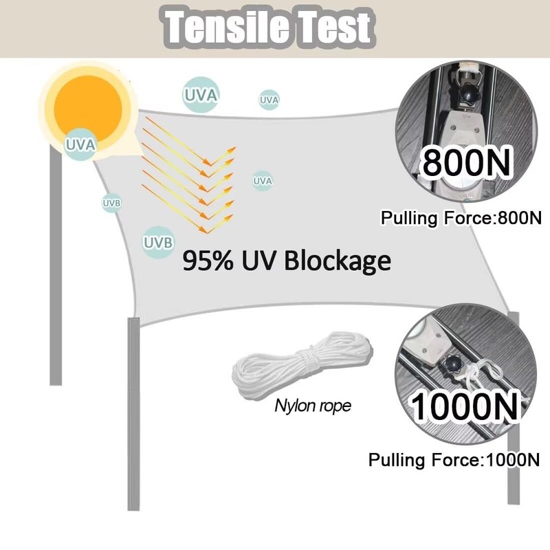 - 【Waterproof】: Our shade sail is made of 300D Oxford fabric with PU Waterproof coating,does not allow water/wind to go through.(the sail needs to be stretched tightly enough to make a taut, flat surface for water to slide down.)