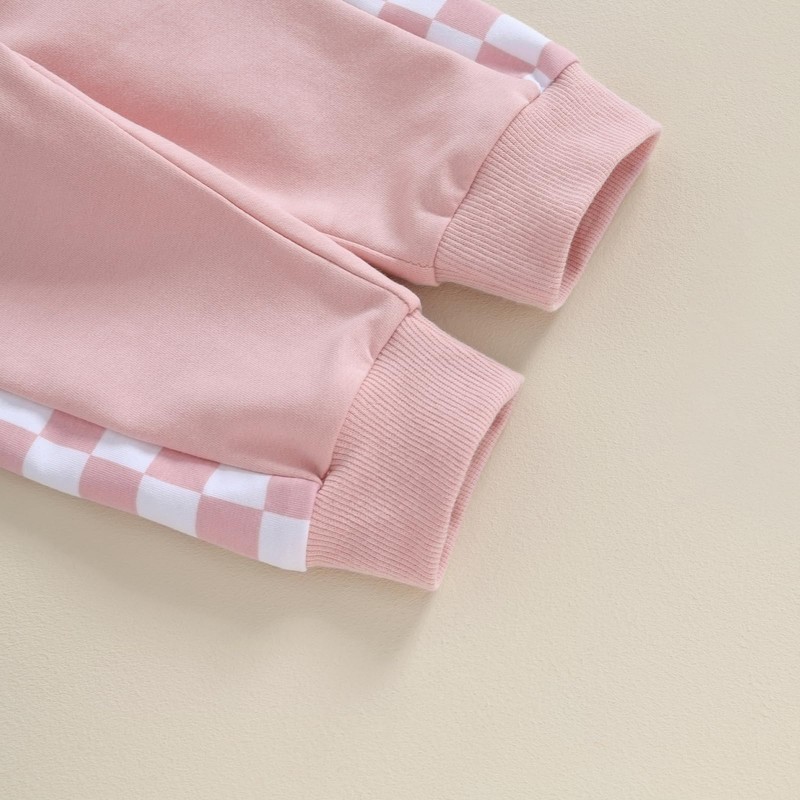 BeQeuewll Baby Girl Clothes Fall Winter Outfits Long Sleeve Sweatsuit Checkboard Sweatshirt and Pants Toddler Infant Clothing (pink, 0-6 Months)