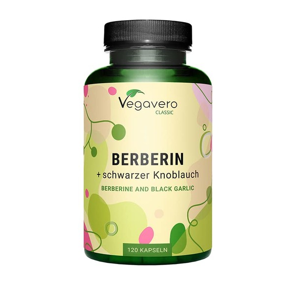 BERBERIN HCL Capsules Vegavero® with Black Garlic Extract Berberine from 500 mg Berberis Aristata Extract 100% Natural and No Additives Vegan 120 Capsules