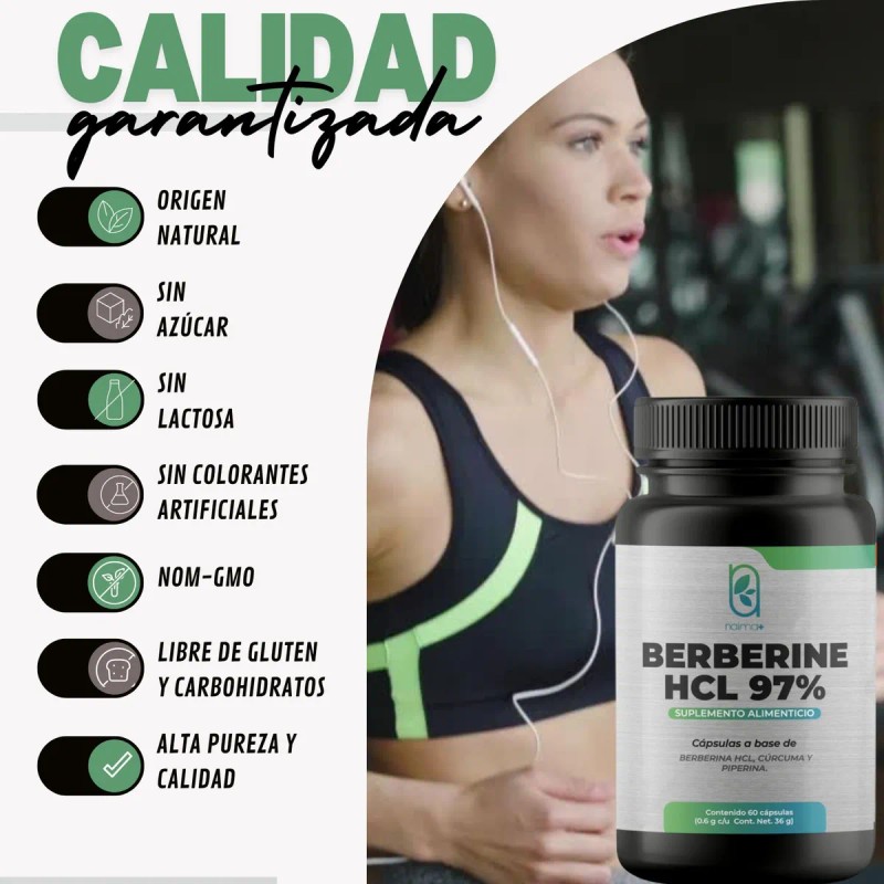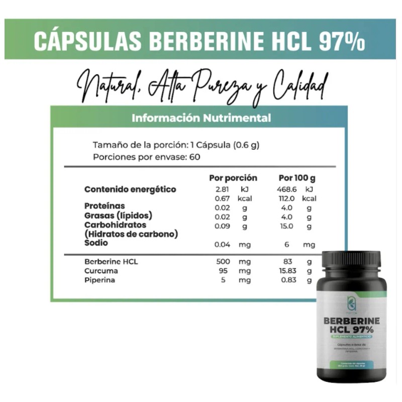 Berberina Hcl 97% 600 Mg Berberina Y Cúrcuma 60 Cápsulas