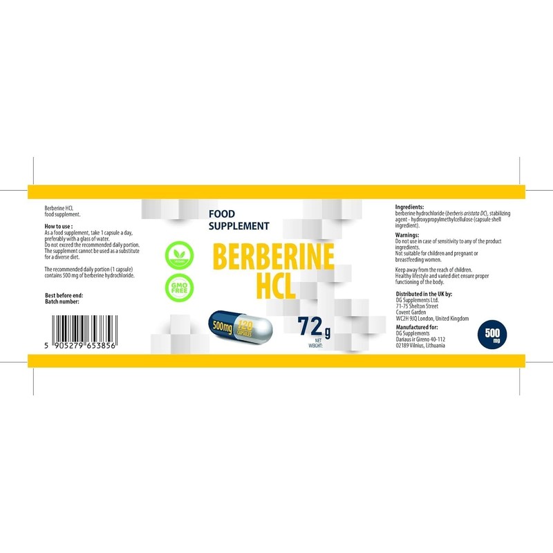 Berberine HCL 500 mg 120 Vegan Capsules, Laboratory Tested, High Dose