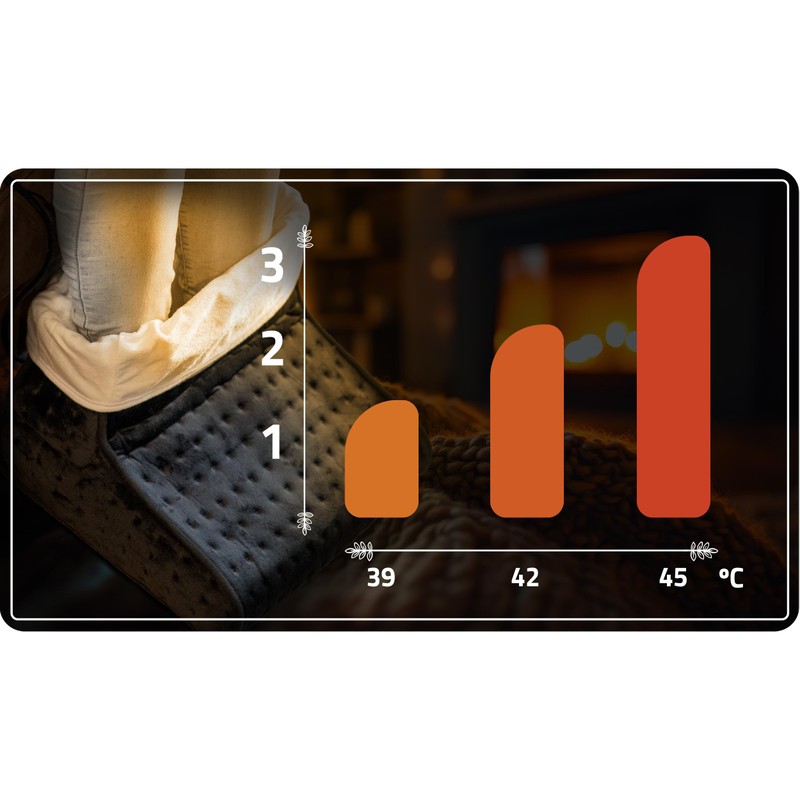 - Choose your ideal temperature (39°C or 45°C) and enjoy a relaxing massage. The foot heater promotes blood circulation and loosens tired muscles.