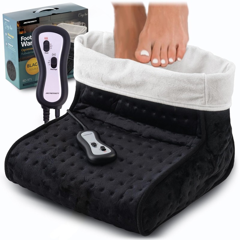 Berdsen Electric Foot Warmer with Massage 2 Temperature Levels Universal Size 550 and 220 g/m² Black