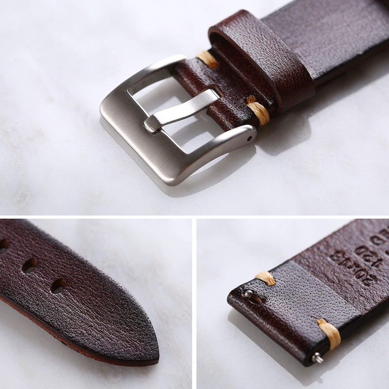 - PREMIUM QUALITY & PERFECT DESIGN: 2.8mm thick vegetable tanned full grain leather with hand-dyeing, durable, retro and fashionable. Classic English point, tapered profile, heavy solid stainless-steel buckle. With quick release pins, you can install and remove the strap easily.