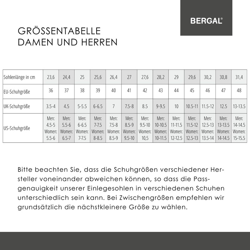 - Hot, sweaty feet on warm days do not have to be. The absorbent Bergal Cotton insoles absorb foot sweat, the foot stays dry. They are particularly suitable for people who quickly get hot feet or sweat heavily.