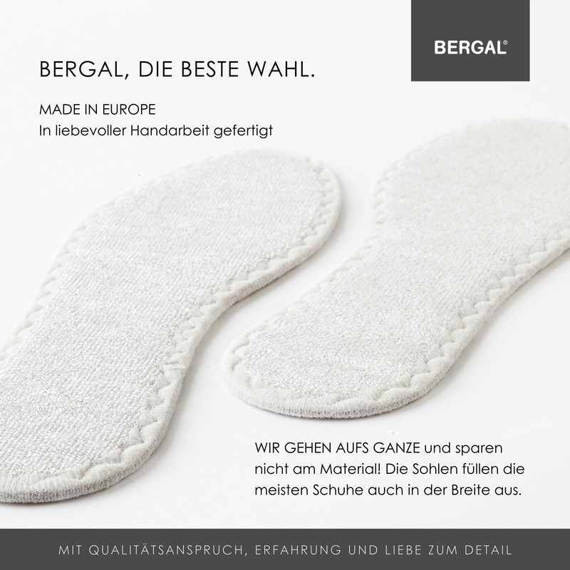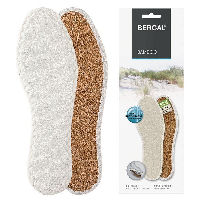• Box contents: 1 pair of bamboo insole from Bergal in single size (available in shoe sizes 36 to 48). For best results, remove the existing shoe insole beforehand and replace it with the BERGAL Bamboo fresh insoles