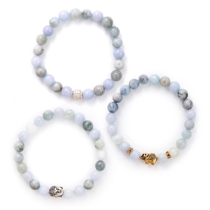 - Yoga and Tibetan lucky bracelet with Buddha head bead. Aquamarine basics: Check out our elephants and 925 silver pearl aquamarine bracelets (picture 3).