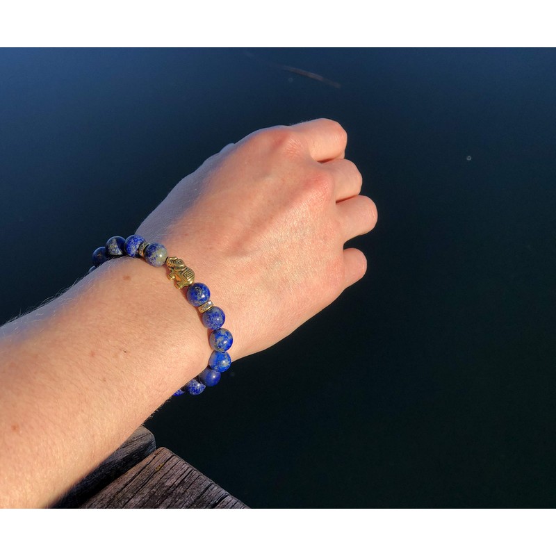 • Lapis lazuli basics – also look at our Buddha and 925 silver bead lapis lazuli bracelets (picture 3). Patina look – the colour of the elephant bracelet changes from gold to a copper antique look after a time.