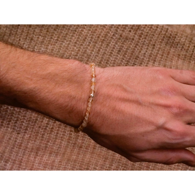 - Faceted pearl bracelet: The filigree natural stone beads are equipped with a facet cut. A delicate silver pearl made of 925 sterling silver rounds off the design. The bracelets are handmade and unisex. There is also a sustainable linen bag, very nice as a gift and for storing the bracelet!