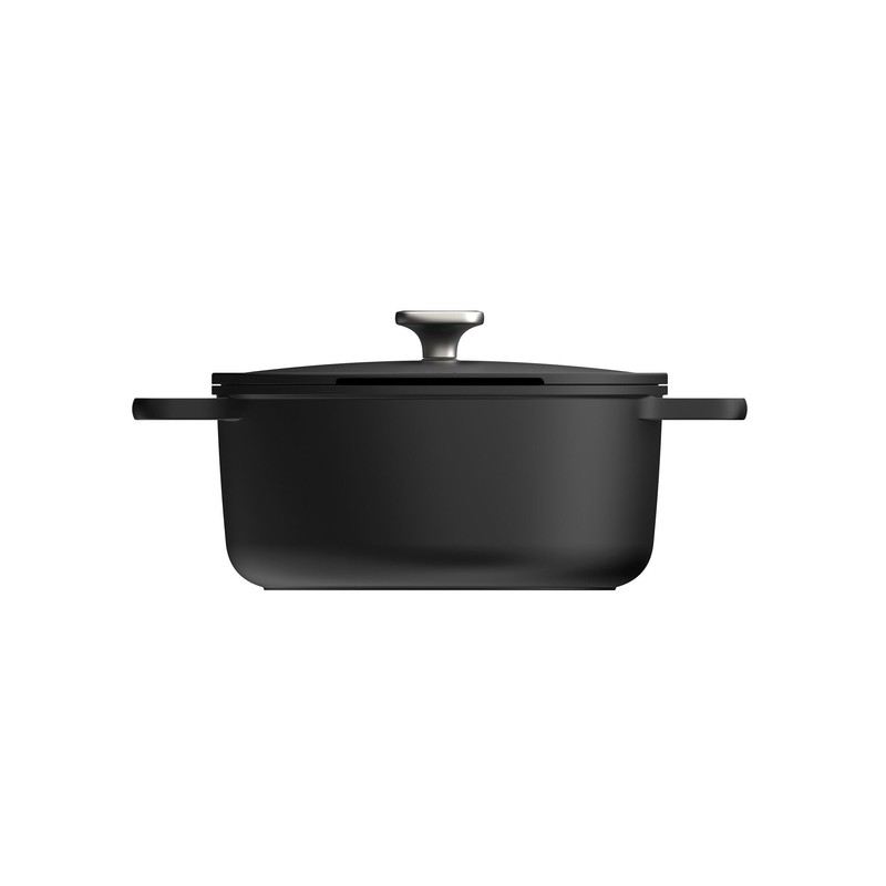 - The lid's self-basting condensation bumps underneath help to circulate moisture and distribute it evenly throughout the pot, ensuring that your dishes are cooked to perfection. Its built-in strainer can easily strain liquids from your cooked ingredients without the need for additional tools or colanders.