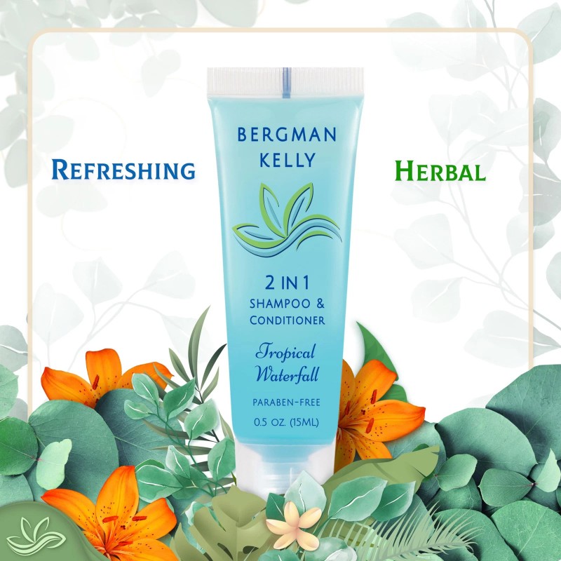 LEAK PROTECTION - Each tube is foil sealed to prevent leaks, maintain hygiene, and preserve freshness; Bergman Kelly 2-in-1 shampoo and conditioner is TSA approved and the perfect size to fit into carry-on luggage for your next business trip or vacation