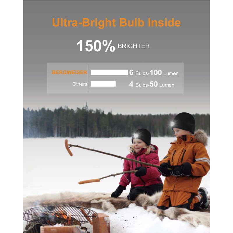BERGWEISER LED Beanie with Light, 3 Adjustable Modes Headlamp Beanie Hat, Removable Rechargeable USB with Night Strobing for Outdoor Running, Camping, Hiking, Fishing, for Kids