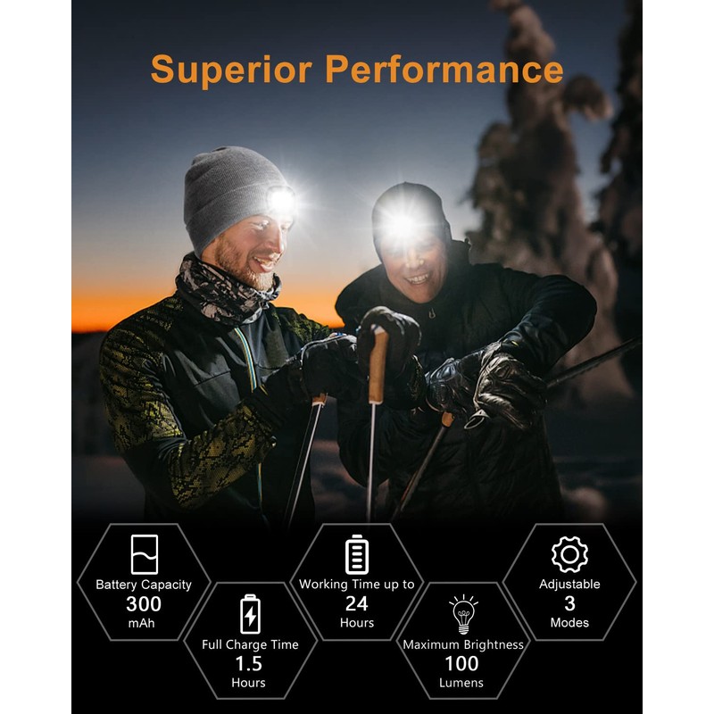 - γπππ πππ & ππππππππππγSoft and lightweight beanie with removable LED light, free up your hands and illuminates your way ahead on chilly nights or dim conditions. Upgraded 6 super bright bulbs provide adequate and durable brightness. Additional Blue-Red strobing lasts up to 24hrs and gets you stay visible in the dark. Perfect Christmas stocking stuffer or birthday gift for the one whom you care and love.