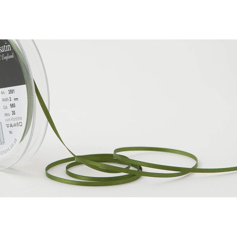 Berisfords Double FACE Poly Satin Ribbon, Cypress, 3 mm