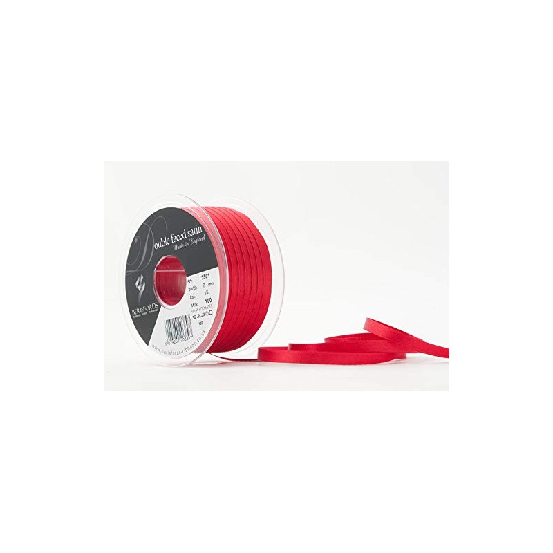 Berisfords Double Faced Satin Ribbon, Red, 7 mm Width, 100 metre Length