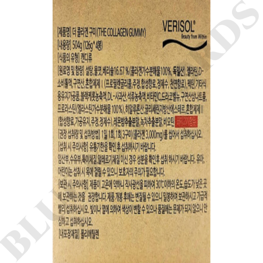 Berisol The Collagen Gummies 126g x 4 bags x 2 boxes, 8 weeks supply / 베리솔 더 콜라겐 구미 126g x 4봉 x 2박스 8주분