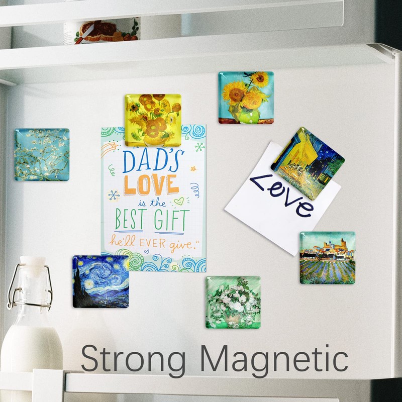 Berkin Arts 12Pcs Cute Square Crystal Glass Strong Magnetic Refrigerator Magnet Fridge Sticker Post-impressionism Yellow Blue Teal Plant Sunflower Starry Night Vincent van Gogh Series