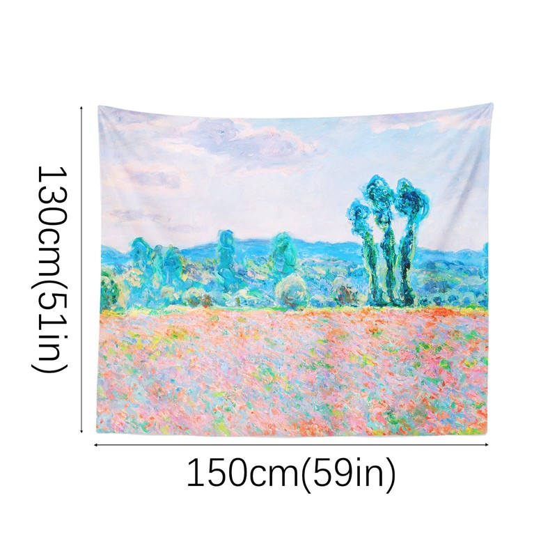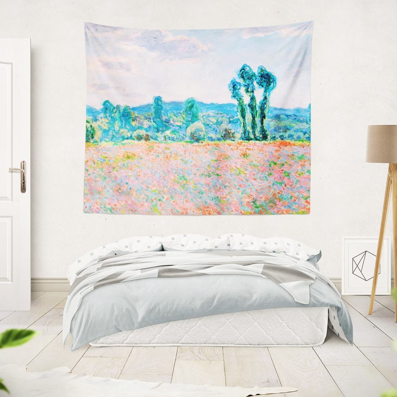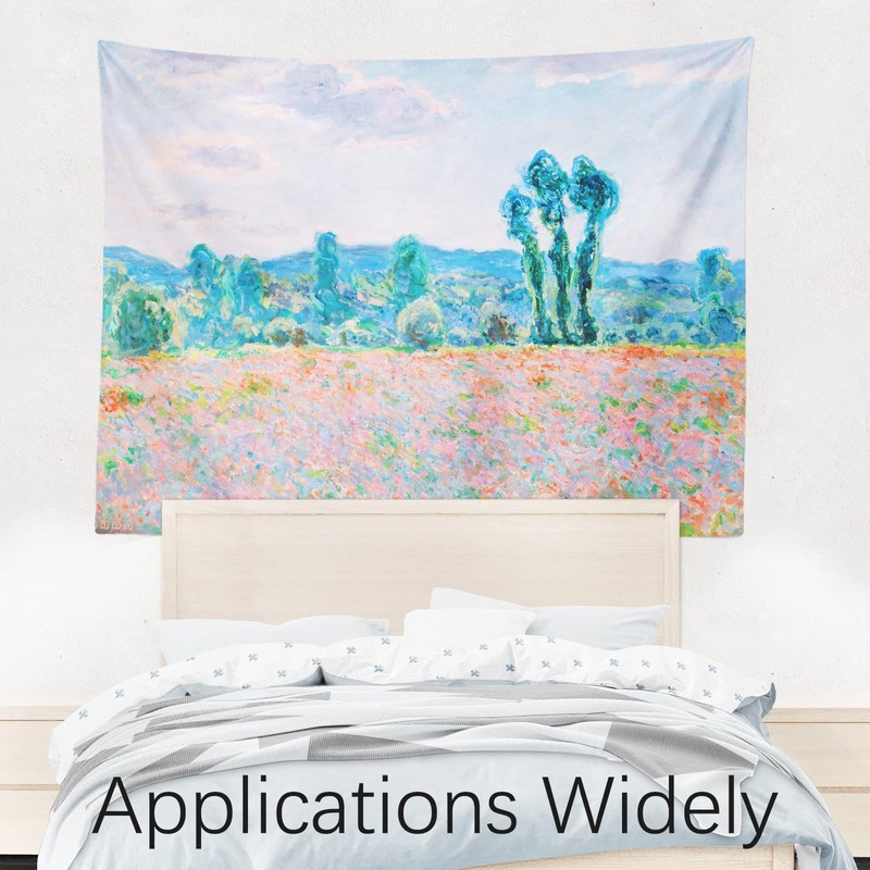 Berkin Arts Art Decor Tapestry with Landscape Design Wall Hanging Aesthetic Backdrop Psychedelic Countryside Forest for Indoor 51.2 x 59.1 Inch (Poppy Field by Claude Monet)