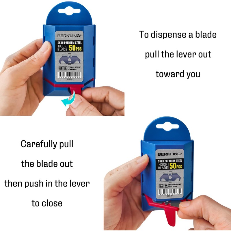 - โถ๏ธ ๐ฃ๐๐๐๐๐๐๐ก๐ - Always have a fresh blade on hand. Each box equips you with 50 pieces of hook blades, ensuring you never run short, and an easy-to-use dispenser keeps you ready to cut at all times.