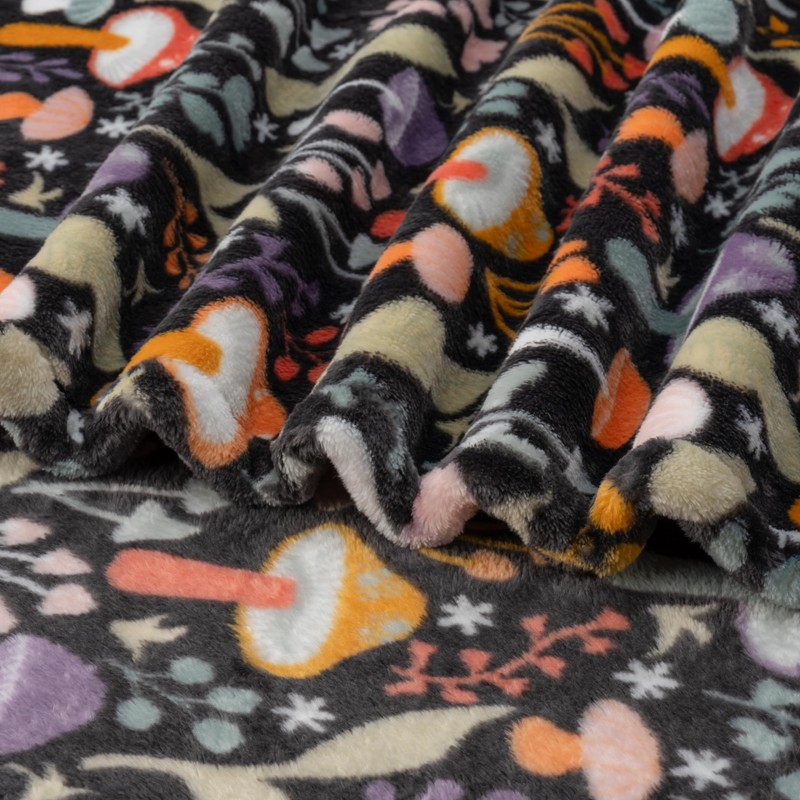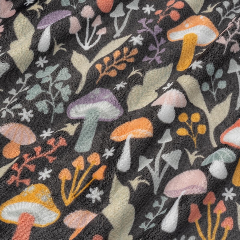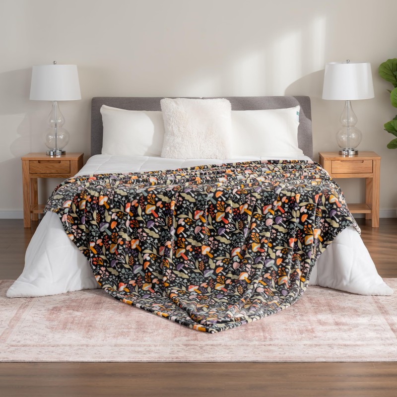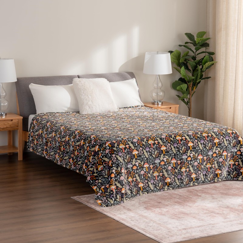 Berkshire Blanket-Classic Heavyweight Warm Soft Printed VelvetLoft® Plush Blanket, King Size Soft Fuzzy Blanket for Couch Sofa Bed, Mushroom Cutie Charcoal, 90in x 108in