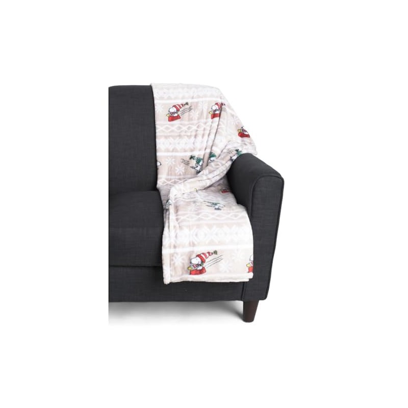 Berkshire Blanket & Home Co Peanuts Gang Christmas Velvet Soft Plush Throw Blanket (Gray - Fair Isle Sledding & Skating, Throw 50x70)