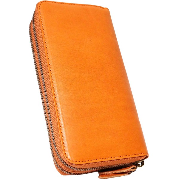 Berkut (Tochigi Leather) Double Zip Long Wallet, Round Zipper, Many Card Slots, Camel