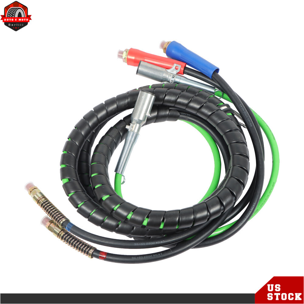 berliii For Semi Truck 3-in-1 15FT Wrap 7 Way ABS Electrical Cables &Rubber Air Line Kit