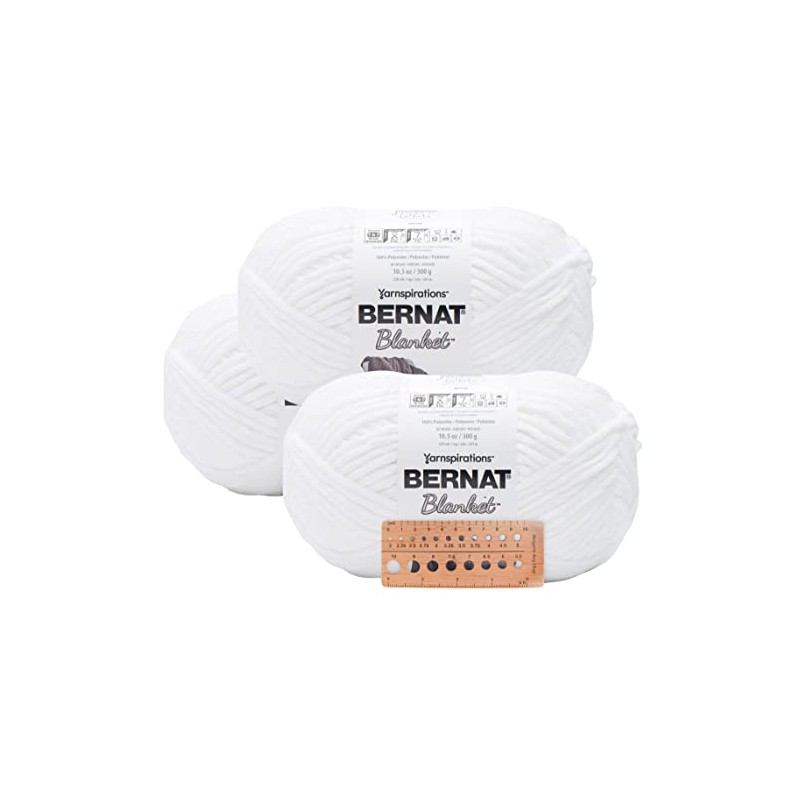 Bernat Baby Blanket - 3 Big Balls - Solid Colors - with Needle Gauge (White)