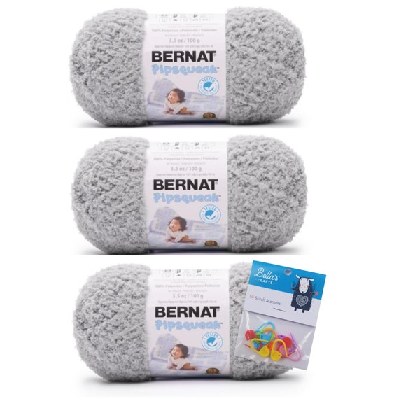 Bernat Yarn Pipsqueak Yarn, 3.5 Oz, 3-Pack Bundle with Bella's Crafts Stitch Markers (Elephant)